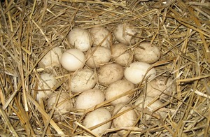 - якщо в гнізді у птиці мало яєць, а підкладе їй нічого, можна піти на хитрість, зробивши з алебастру спеціальні підкладні яйця, так звані муляжі. Квочка навряд чи розпізнає обман і охоче сяде на гніздо. Забруднені штучні яйця час від часу варто замінювати на нові;