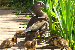 З появою пташенят сімейна пара починає навчати їх літати і плавати. Молоді качки швидко підростають, стають міцними і вже через 40 днів стають на крило.