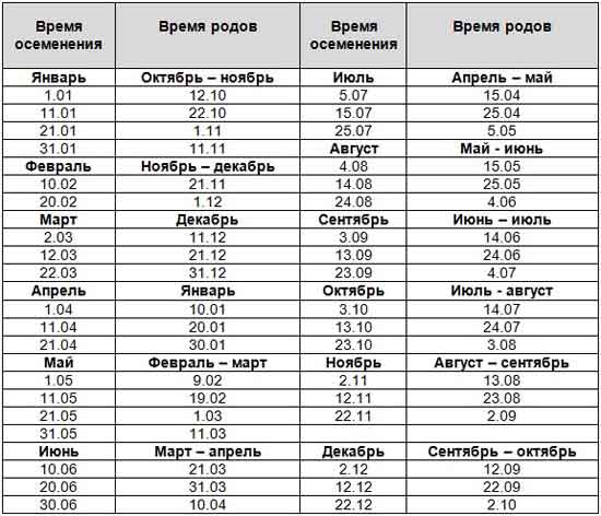 Наприклад, осіменіння було 20 червня. Вважаємо – червень у нас 6 місяць згідно з календарем. Підставляємо значення й одержуємо– (20+11).(6-3) = 31.03 або 31 березня.