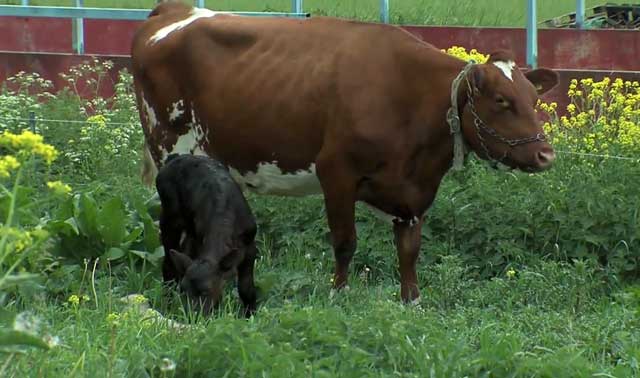 Теляті не дозволяють знаходиться поруч з матір’ю. Його забирають в перший же день і поміщають в спеціальний бокс і поять молоком.