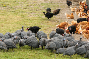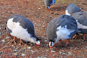 - Формування зграї у африканських курочок можливо тільки в ранньому віці, ще до настання статевої зрілості. Як правило, в ранньому віці птиці формують дуже згуртовану групу, куди входить кілька курочок і один півник. І потім, протягом усього подальшого життя, ця група не розпадається. Сформувати зграю з дорослих особин у цесарок неможливо. Птахи будуть триматися особняком, сторонячись один одного. В цьому випадку значно знижується несучість і практично до нуля падає заплідненість яєць.