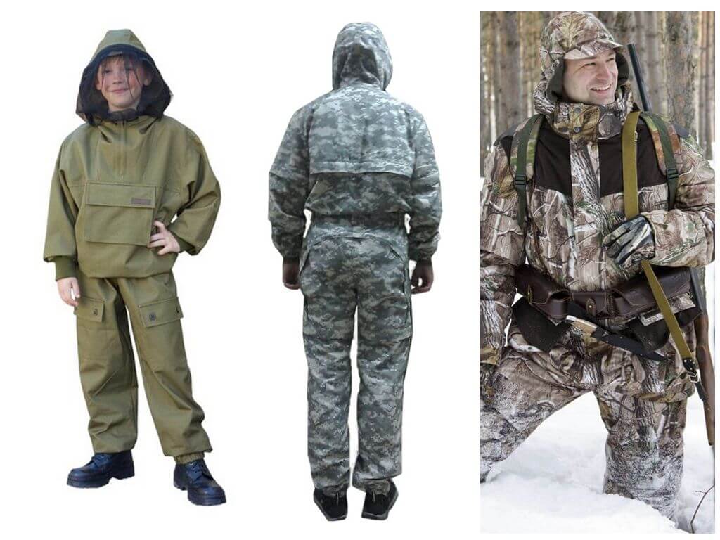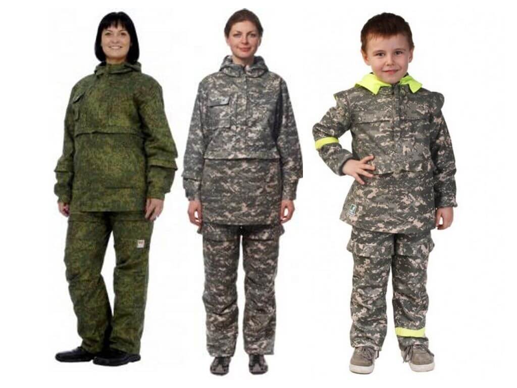 Між шарами може бути додаткове утеплення на випадок холодної, сирої погоди. На рукавах манжети, на штанинах затягування з шнура. Куртка застібається на блискавку, є капюшон, натискна сітка. Деякі комплекти від комарів укомплектовані рукавичками.