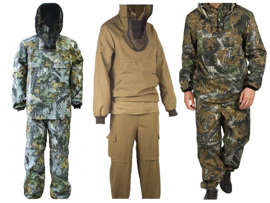 Костюм від комарів і кліщів, а також мошкари, іншої дрібної живності являє собою плямистий комплект з кофти з капюшоном, штанів.