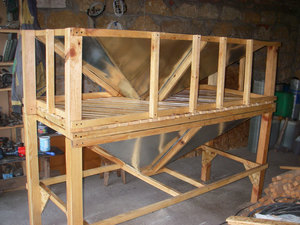 Каркас роблять з хвойного бруса, фарбують фарбою білого кольору. Сінник виготовляється з вологостійкої фанери, товщиною від 8 мм Всередині його оббивають металевою сіткою, і він же служить дверкою в кожній секції.