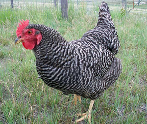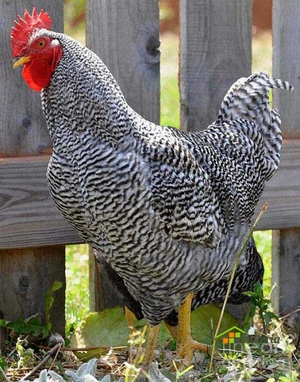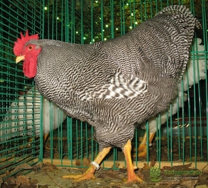 Півень на ділянці попереку має на пір’ї більш вузькими чорними або білими смужками, за допомогою чого його малюнок виглядає більш ясно, ніж у решти курок. Махові пера покриті великим і помітним візерунком. У курці ж по всьому тілу розходяться лінії однакові по ширині і довжині. Вона зовсім несхожа на півня інтенсивністю забарвлення чорних смужок, тому її оперення здається набагато темніше. Голова у курок повинна бути або середнього або маленького розміру.