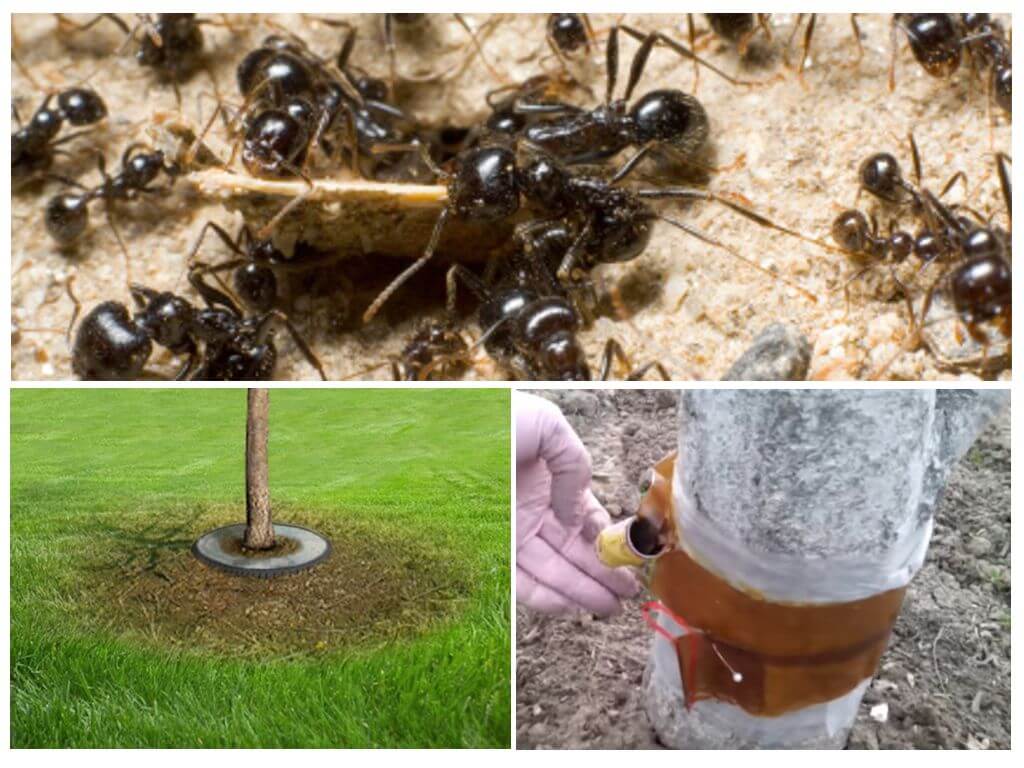 Навколо зараженого мурахами дерева або куща слід вирити канаву, діаметр якої буде відповідати вирізаному кільцю. Крізь крону на стовбур дерева одягають покришку, і заповнюють ємність водою. Така водна перешкода буде надійно захищати насадження від шкідників.