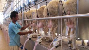 На великих фермах вівчарі доять маток з допомогою апарату в спеціально обладнаному приміщенні.