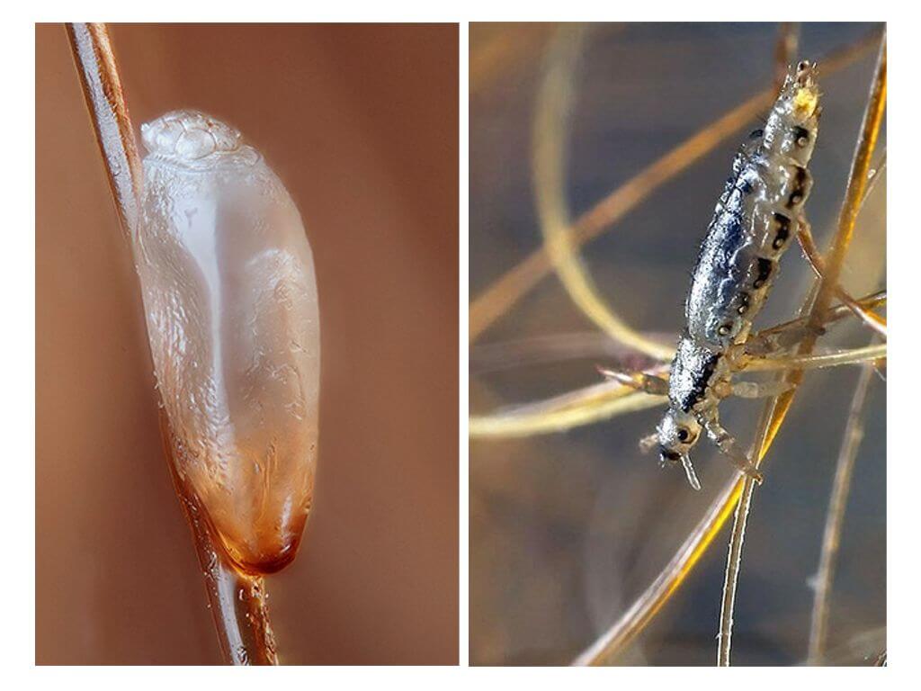 - В яйці личинка розвивається від 7 до 14 днів. На світ з’являється істота, схожа на дорослих вошей, але відрізняється дрібними розмірами – до 1 мм. За тиждень німфи проходять 3 линьки. Перетворюються в статевозрілу вшу.