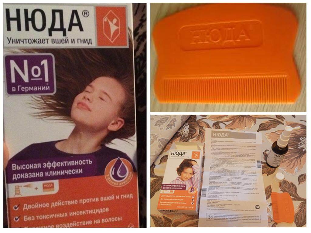 В комплект входить гребінь, спеціальна конструкція якого дозволяє легко вичесати гниди, не наносячи на шкірний покрив пошкодження. Для короткого волосся флакона вистачить на 20 обробок. Протипоказаний дітям до 5 років, людям з індивідуальною непереносимістю компонентів спрею, а також вагітним і годуючим жінкам. - Нюда – аерозоль на основі диметикона, який блокує надходження повітря в дихальну систему воші, тим самим знищує паразитів. Препарат хоч і не відрізняється за токсичністю, однак мінімальний віковий поріг для його застосування 3 роки.