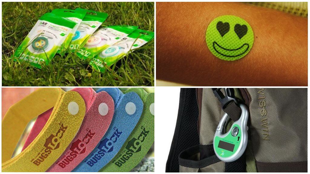 В цю групу можна віднести різноманітні брелоки, наклейки, пластирі, браслети, а також спіралі для обкурювання. Ці методи відрізняються своєю безпекою і зручністю застосування. Вивчення відгуків дозволяє зробити висновок про сумнівної ефективності такого способу захисту, як застосування брелоків і кнопок. Але їх комбінування з іншими репелентами може дати бажані результати.