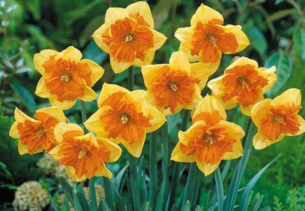 Хиамур – жовтий нарцис з групи махрові. Відрізняється великими квітками з пелюстками незвичайної форми, як видно на фото. Перевага рослини в тому, що воно добре розмножується навіть без сторонньої допомоги. Період цвітіння припадає на другий місяць весни.