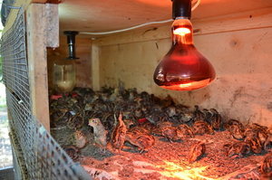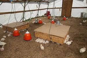 При вирощуванні курчат необхідно подбати про створення їм сприятливих умов. Молодняку повинен бути забезпечений певний температурний режим. У вольєрі виготовляється тепла підлога, а всередині ведеться обігрів різного виду лампами. Певні вимоги пред’являються до розміру площі та кількості розташованих на ній опалювальних приладів.