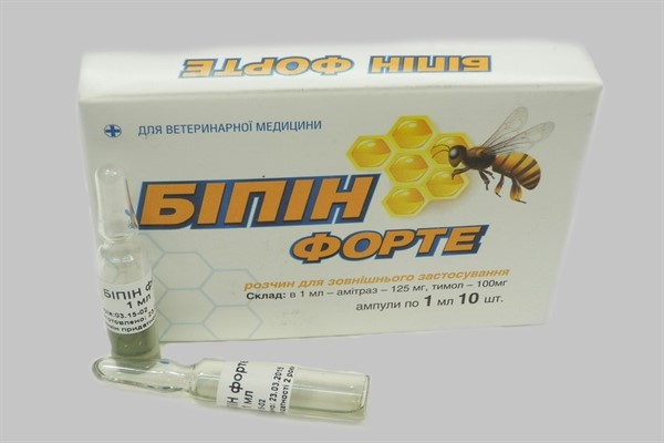 «Біпін» — системне акаріцидниє (протикліщове) засіб контактного дії. Базова речовина в складі – амітраз, спеціально створене для того, щоб боротися з паразитами, особливо кліщами-шкідниками. Розфасований «Біпін», в невеликих скляних ампулах, по 10 штук в упаковці.
