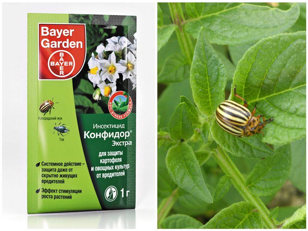 Обробка бульб картоплі здійснюється шляхом обприскування. Засіб діє на основі імідаклоприду. Відгуки про ефективність переважно позитивні. Додатково захищає культуру від хвороб, навали тлі, молі, шкідництва капустянки. Конфідор економно витрачається, зберігає властивості до 50 діб. Для приготування розчину необхідно 1 мл концентрату розчинити в 10 л води, допускається більш висока концентрація з розведенням у 5 л рідини. Купити препарат можна в спеціалізованому магазині, господарських відділах супермаркету, замовляють через інтернет. Конфідор випускає відома компанія Байєр. За 0,5 л оригінального інсектициду доведеться заплатити 6300 руб. Пакетик з 1 г засобу варто 27 руб.
