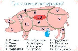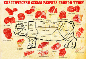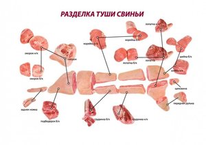 Схема частин туші свині по сортам