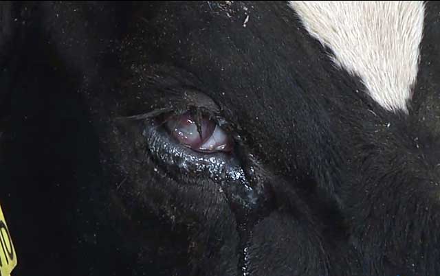 Коров’ячий очей так само, як і людський, зовні захищений прозорою плівкою – рогівкою. Якщо вона запалюється, то очі починають сльозитися, мутніють. Корова починає болісно реагувати на світло.