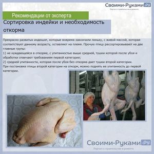 І якщо хтось звик купувати індичку в магазині, інша група людей віддає перевагу натуральному продукту, вирощеного на власній фермі. У такому випадку вам не доведеться сумніватися в якості і безпечності м’яса. До того ж зміст цієї домашньої птиці буде корисною для тих сімей, де є вагітні або годують жінки, маленькі діти або особи, змушені справлятися з великими фізичними навантаженнями.