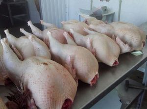 Однак забою на м’ясо підлягають і 2-3-річні самці, які втрачають цінність виробників, але важать дуже багато і володіють дуже смачним м’ясом. Важливо розуміти, що до дії прийнято приступати до початку линяння, тому що в противному випадку тушку буде проблематично обскубти з-за безлічі пеньків. Тому з цією справою краще не зволікати.