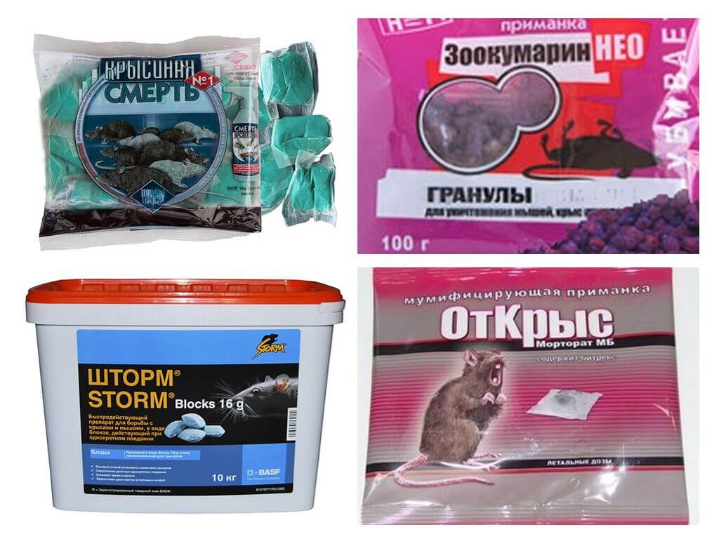 Антикоагулянти крові. Активними компонентами виступають зоокумарин, варфарин, бродіфакум, флокумафен. Препарати на основі даних компонентів є найбільш ефективними для боротьби з мишами і щурами в приватному будинку.