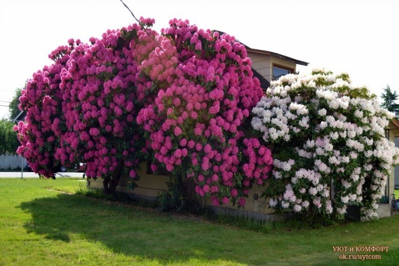 Рододендрони – розкішні декоративні чагарники, розквітаючій у весняну пору шапками ніжних суцвіть.