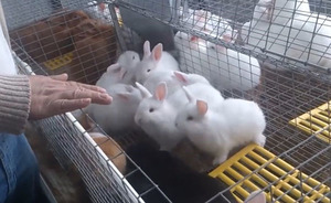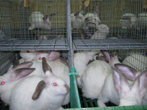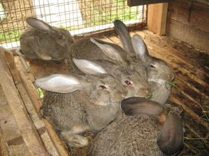 Кролиць, які вийшли з декількох приплодів, підсаджують у вольєр до молодих кролям.
