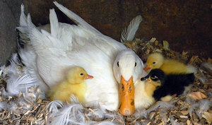 Качки — полохливі птахи, особливо в момент несення яйця. У пташнику потрібно вести себе тихо.