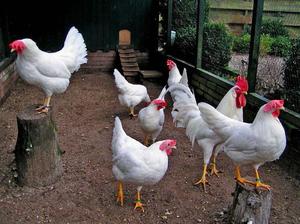 - Білий леггорн. Цей вид особливо полюбився бізнесменам. В першу чергу це пов’язано з їх високою несучістю, яка була досягнута численними вдосконаленнями різновиди. Така курочка може знести понад 200 яєць в рік. Містять їх найчастіше в клітинах, де панує антисанітарія. Із-за тісноти, вживаних антибіотиків, штучних кормів кури несуть яйця не більше року. Після закінчення цього терміну поголів’я оновлюється. Відразу ж знищуються особини, які виявляють бажання висиджувати яйця.