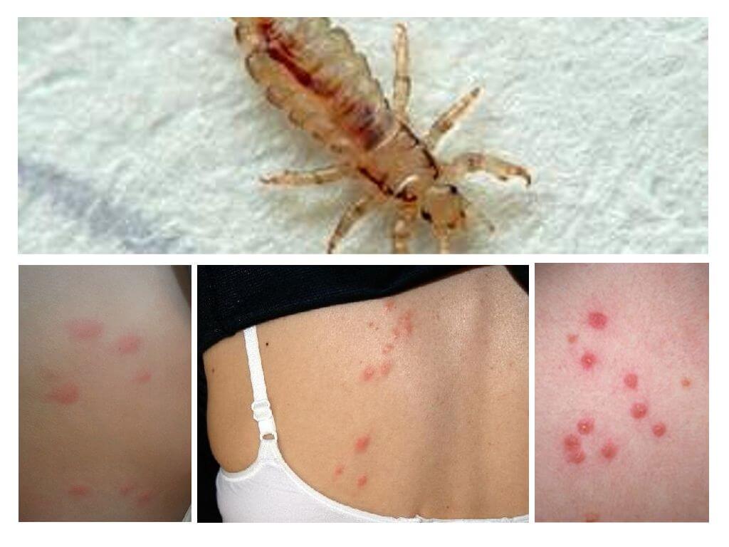 - множинні укуси на тілі, які викликають неприємний свербіж, почервоніння і запалення, гояться за 3-4 дня (фото укусів платтяних вошей дивіться внизу);