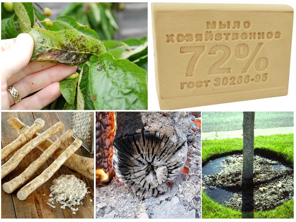 - 1 кг деревної золи заливають 10 л води, ретельно перемішують, настоюють добу. Додають мило. Обробляти черемшину слід двічі протягом тижня.