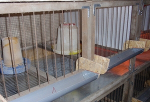 - Годівниці. Корми у птахів повинні бути завжди в свіжому стані, а годівниці чистими, тому одну їх частину необхідно встановити в будиночок, а інша повинна бути розташована зовні. При такому розміщенні годівниць їх буде досить легко чистити, а для подачі корму не треба буде кожен раз відкривати клітку. Багато воліють споруджувати годівниці з труб ПВХ. Для цього необхідно лише розпиляти трубу уздовж і ретельно прикріпити до клітинної конструкції. Курчата, просовуючи голову через сітку, з такої годівниці будуть їсти, при цьому не розкидати корм.