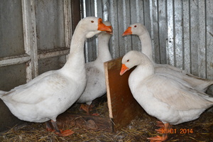 Приміщення. Простір обов’язковий для правильного розвитку гусей. Тому пташники облаштовуються в приміщенні з розрахунку 1 квадратний метр на 1,5 голови. В затемненому місці на підлозі формують гнізда 40×60×50 з дерева або фанери зі стружкою. Зазвичай стружку кладуть на підлогу, а гніздо являє собою огорожу без дна. Одне місце має припадати на 3-4 гуски.Годівля і вигул