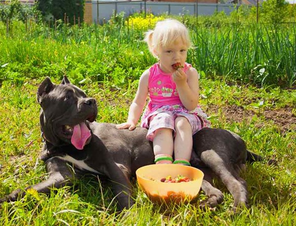 Кане корсо – порода собак з сильно розвиненим батьківським інстинктом. До дітей ставлення серйозне, відповідальне і дбайливе, як до своїх, так і чужих. Людський дитинча для них – святе, а їх плач – сильний стрес для тварини.