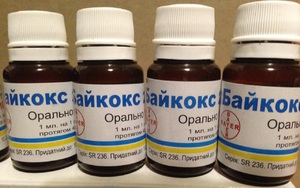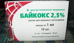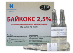 - «Байкокс» 2,5% (25 мг на 1 мл розчину).
