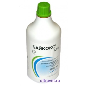 - «Байкокс» 5% (50 мг толтразурила на 1 мл розчину);