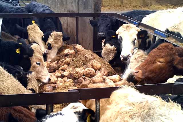 У добу в три прийоми кожна молочна особина повинна з’їдати до 50 кг соковитого корму різних видів. Це може бути добовий набір з 5 кг буряка, 7 кг моркви, 8 кг кабачків і 30 кг зеленої маси бобових культур. Грубих кормів потрібно 10-12 кг в день.