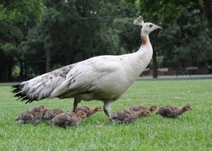 - у природному середовищі пава — чудова мама, але іноді у вольєрі вона забуває про свої обов’язки, відмовляється за пташенятами доглядати. Але якщо вона сіла висиджувати, то під неї можна покласти ще до 12 яєць;