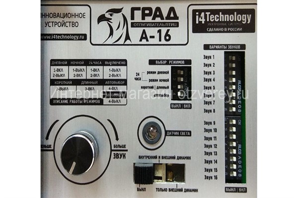 Град А 16 вважається одним із самих ефективних. Він видає панічний крик птаха, коли вона намагається втекти від хижака. Цей звук дає голубам зрозуміти, що до джерела звуку наближається не можна. Аналогом Град А 16 є Торнадо ОП 1, який використовує таку ж методику відлякування голубів.