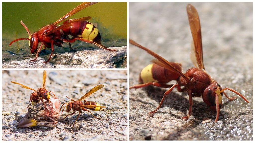 - Забарвленням трохи схожий з європейським шершнем, але чорний колір «замінений» на червоно-коричневий. Верхня третина черевця і кінчик теж мають червоно-коричневий колір. Між ними розташована жовта смуга. З-за такої коричневого забарвлення цей вид великих ос має третє назва: «червоний шершень».