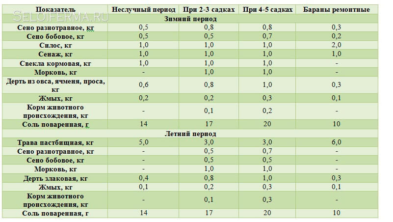 - Не случный. Триває від півтора до двох місяців до злучки і є підготовчим заходом до майбутнього запліднення вівцематок. Якщо тварина весь час знаходиться в стійлі, його раціон складається з наступних інгредієнтів: 2-2,5 кг сіна; 1-1,5 кг силосу; близько 1 кг – овочі, комбікорм та макуху.