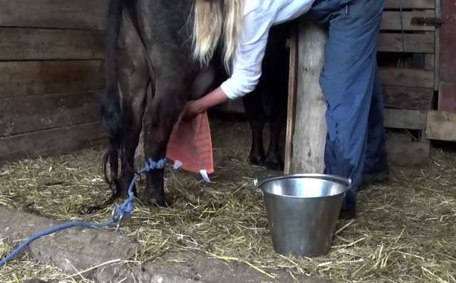 У першому випадку все йде простіше, достатньо буде підійти до тварини і зв’язати його задні ноги товстою мотузкою, після чого його спокійно доять. Пов’язувати їх слід ковзним і нетугим вузлом, а краще підходити з передньої сторони, ніж з задньої. Коли корову таким чином сплутали, можна спокійно приступати до доїння, зроблений за всіма правилами вузол буде допомагати цьому процесу.