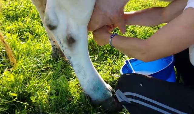Перше, що слід зробити — дайте корівці її улюблені ласощі, наприклад, овочі. Чи можна давати їй подрібнене в дробарці зерно. Як тільки вона приступить до їжі, спробуйте почати процедуру доїння.