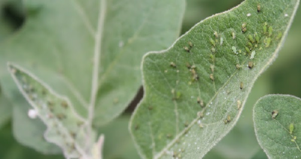 Попелиця на листках баклажанів
