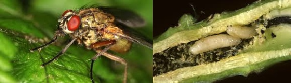 На фото капустяна муха і її личинки