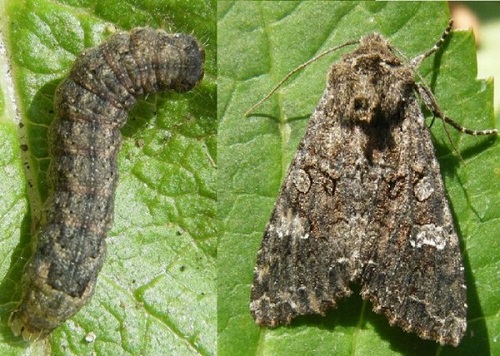 На фото капустяна совка і її гусениця
