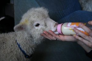 Ягня, що залишився після народження без матері або з якихось інших причин опинився без природного харчування, вигодовують штучно. Годують немовля молоком іншої вівці, кози чи корови.