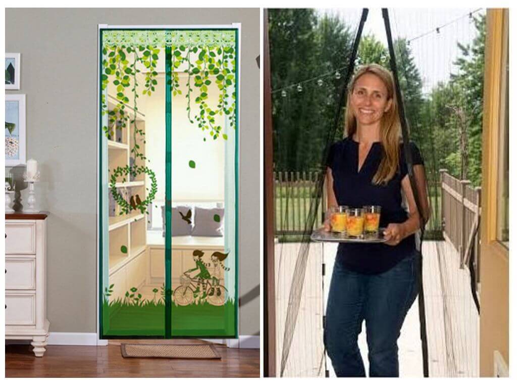 Дверна магнітна штора від комарів – це два полотна прямокутної форми, зроблені з тонких поліефірних ниток. По краях цих прямокутників вставлені магніти, утримують половинки полотна від розкриття. Коли потрібно пройти крізь штору, потрібно розсунути і притримувати полотна руками. Після того, як людина прибирає руки, магніти повертають половинки на своє місце.