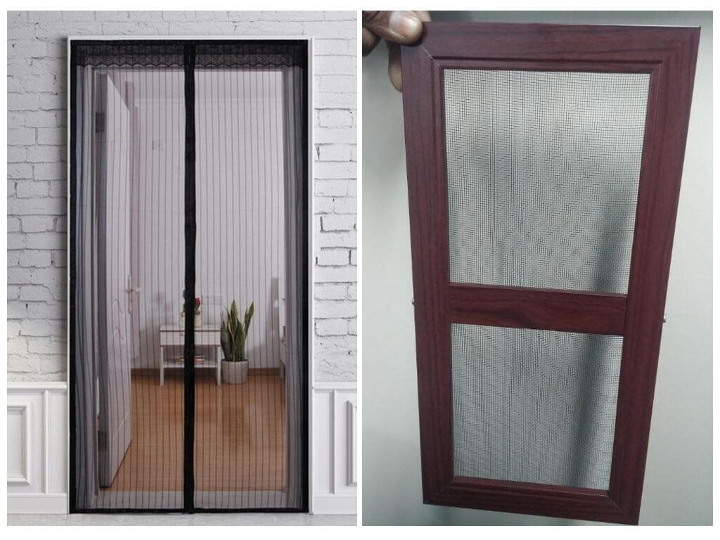 Сітка проти комарів у формі двері виготовляється в декількох варіаціях, кріпиться по-різному. Це можуть бути магніти, завіси. Дверцята з москитным полотном встановлюється на місці балконних дверей, вхідних. Стулки автоматично зсуваються при проходженні людини або ж закриваються, як звичайна двері.