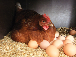 Від нестачі світла знижується кількість яєць. Для хорошої несучості світловий день повинен бути близько 14 годин. На ніч світло не залишайте, курка повинна спати.