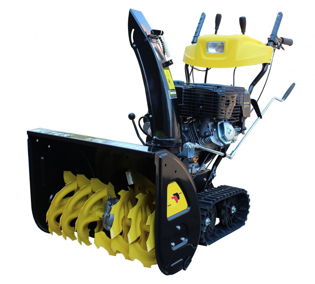 - Відмінно впорається з великими кучугурами свіжого та залежаного снігу машина для прибирання снігу Huter SGC 8100C. Наявність гусеничної системи пересування гарантує стійкість техніки навіть на слизькому сніжному покриві. Ширина захвату ковша досягає 75 див. Завдяки цьому впоратися з прибиранням снігу на великій території можна значно швидше. Конструкція мотора обладнана бензиновим двигуном потужністю 11 кінських сил. Це стало можливим завдяки наявності електричного стартера. Важливе значення має можливість запуску техніки в ручному режимі. Використання шнека роторного типу підвищує рівень продуктивності агрегату на кілька порядків. Наявність жолоби, виготовленого з металу, є гарантією надійності і міцності техніки. Саме за його допомогою виконується процес викиду снігу.