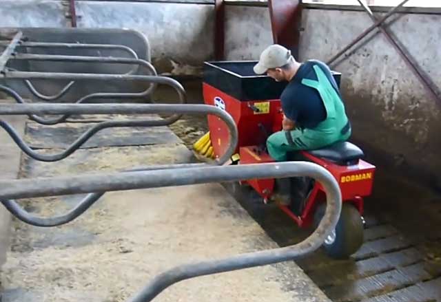 Корм подається на спеціальний стіл, розташований з одного боку загороди. Підхід до нього забезпечений обмежувачами.